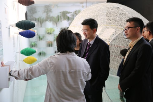 工作人员向佳兆业集团副总裁韩振捷等嘉宾介绍作品含义