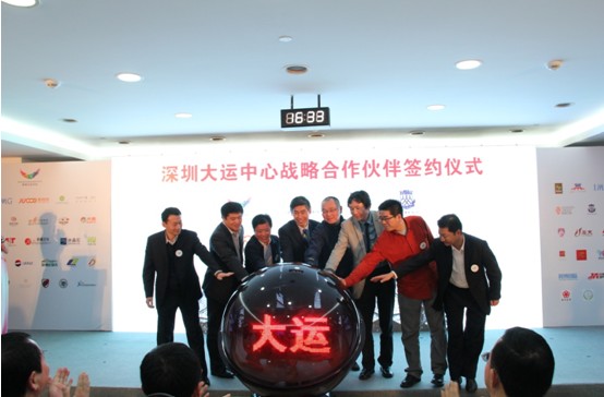 2013年4月11日下午,璀璨的大运中心迎来了一群特殊的客人,美国IMG集团中国区总部、上海八万人体育场运营商上海东亚体育文化有限公司、北京工体运营商北京体育之窗文化传播有限公司、北京鸟巢水立方赛事运营商、澳洲虎体育传媒(深圳)有限公司、北京时博国际体育赛事有限公司等等来自全球各文化体育领域的演出经纪公司、体育赛事经纪公司、会展公司以及国内外场馆经营的专家和学者共200多人齐聚一堂,参加“深圳大运中心战略合作伙伴签约仪式暨‘多角度看体育场馆运营之道’高峰论坛”主题活动。