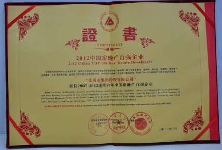 两天前的3月21日,由中国房地产研究会、中国房地产业协会、中国房地产测评中心联合主办“2012中国房地产开发企业500强测评成果”百强榜单佳兆业也成绩卓越。据悉,佳兆业获得综合排名17,并获得外资企业和创新能力冠军,发展潜力亚军,行业地位较去年提升23名,更因业绩出色而被称为“弯道超车”的地产企业。