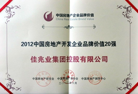 本次佳兆业跻身“中国房地产品牌价值二十强”品牌价值大幅度提升至百亿行列,实现了集团在品牌建设方面的重大跨越,是集团荣获中指院的品牌价值十强和四大国有银行等权威机构颁出的资信十强后的又一重要殊荣。