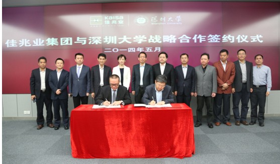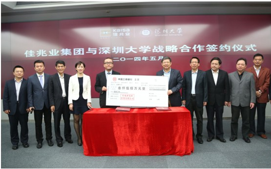 5月9日上午,在深圳龙岗区政府迎宾馆,集团总裁金志刚代表佳兆业集团与深圳大学校长李清泉签署了战略合作协议,双方将在合作办学、房地产、互联网、金融、高新技术、医疗、养老、旅游等领域进行深度合作。随后,“深圳大学师范学院附属坂田学校”签约仪式举行,该校正式落户佳兆业·城市广场。深圳大学副校长杜宏彪、徐晨,佳兆业集团总监黄琴等双方高管,及近20位深圳主流媒体记者见证了这一历史性时刻。