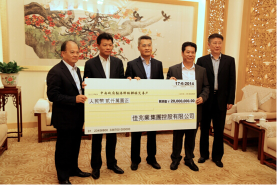 6月17日,佳兆业集团通过香港中联办为中国内地基础教育捐资2000万元人民币,该款项将用于广东省普宁市华侨中学的教育办学,这是集团继去年4月捐资2000万港元后,再次大力支持普宁教育事业。当天下午在香港举行的捐赠仪式上,香港中联办副主任黄兰发、中联办港岛工作部部长吴仰伟、普宁市市委书记胡焕华,佳兆业集团董事局主席郭英成,佳兆业集团股东代表、富昌金融集团董事局主席郭俊伟等出席了活动。
