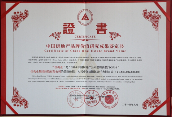 9月19日,由中国指数研究院、国务院发展研究中心企业研究所等机构共同主办的“2014中国房地产品牌价值榜单”在北京发布。佳兆业连续3年获“中国房地产公司品牌价值TOP10”,同时继续在专业品牌价值领域独占鳌头,连续两年荣膺“2014中国房地产专业领先品牌价值TOP10——城市更新领域”。此外,9月17日,由中国房地产业协会等机构颁布的“2014年房地产品牌价值测评成果”显示,佳兆业集团品牌价值已增长至115.79亿元。一元云购吧