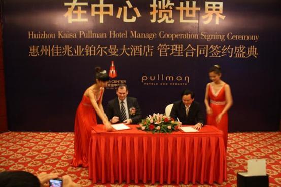 继2010年7月26日和8月6日分别与万豪国际集团旗下的万豪度假、万怡两个品牌成功签约后,9月28日,佳兆业集团旗下酒店管理公司可域酒店管理(深圳)有限公司与国际酒店管理巨擘雅高集团举行关于惠州佳兆业中心铂尔曼大酒店的管理合同签约仪式。