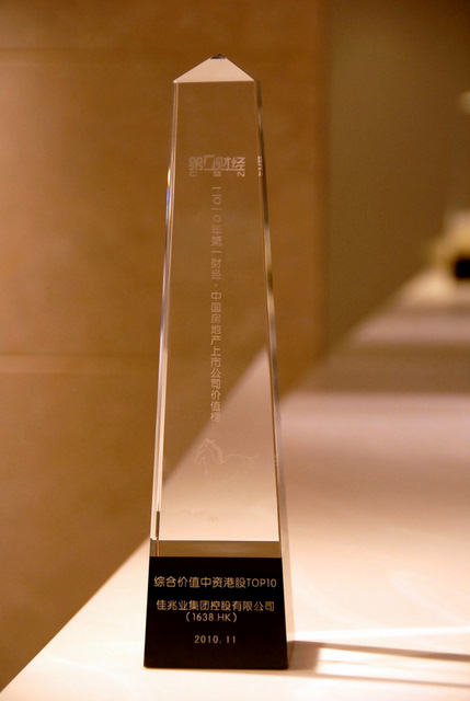 2010年11月5日,《第一财经》发布2010年度中国房地产上市公司价值榜,于去年底上市的港股新秀佳兆业集团榜上有名,荣列“2010第一财经·中国房地产上市公司综合价值中资港股TOP 10”第五名。