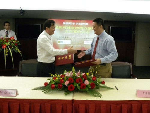 根据协议,双方将携手打造深圳东部滨海首家顶级度假酒店品牌——可域金沙湾万豪酒店。可域金沙湾万豪酒店位于碧海蓝天、风光旖旎的深圳东部大鹏海滨,计划于2013年中开业,酒店建筑面积达4万多平方米,主要设施包括320间客房、中西餐厅、娱乐中心、水疗中心、大型宴会厅、多功能会议室、室外游泳池等设施。2009年8月,国家旅游局和深圳市政府签约深圳旅游发展协议,强调着力打造深圳大鹏半岛为“国际一流水准的生态型滨海旅游度假胜地”,旨在吸引全球中高端旅游客,可以预期,未来数年内大鹏半岛的旅游业将迎来历史性的高峰发展。