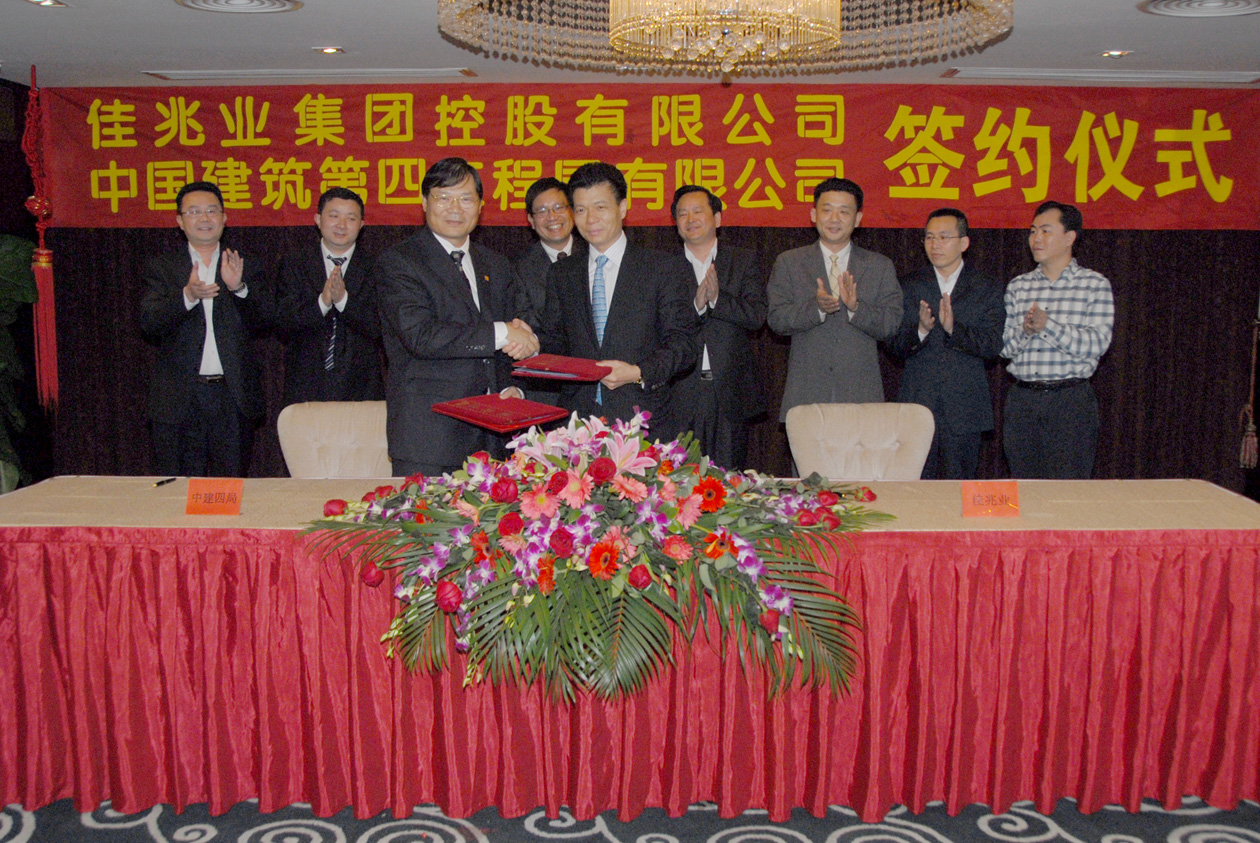 2010年2月1日,佳兆业集团与中国建筑第四工程局有限公司(中建四局)签订策略联盟框架协议。根据此合作协议,佳兆业将在未来三年,与中建四局在国内项目的建设工程中寻求战略合作,为本集团的国内项目建设寻找稳定的承建商。本次战略协议的签署将进一步深化双方合作以及分享各自的竞争优势,并为 佳兆业标准化、规模化的产品战略,提供稳健的技术保障。